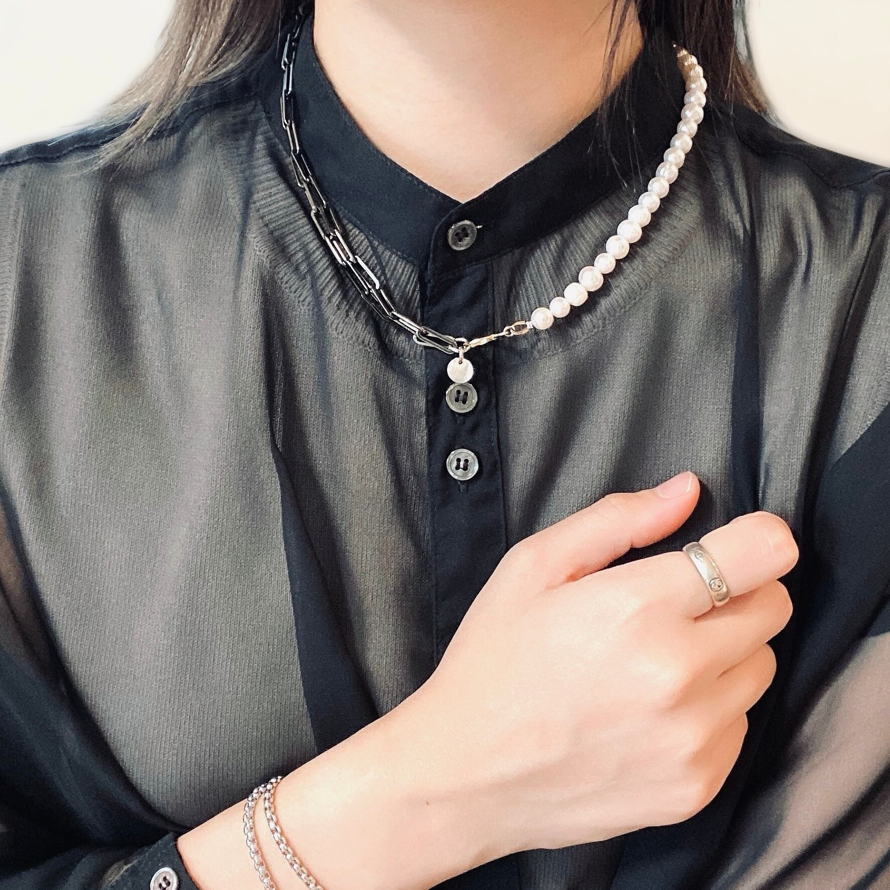 異素材を組み合わせたネックレスです。