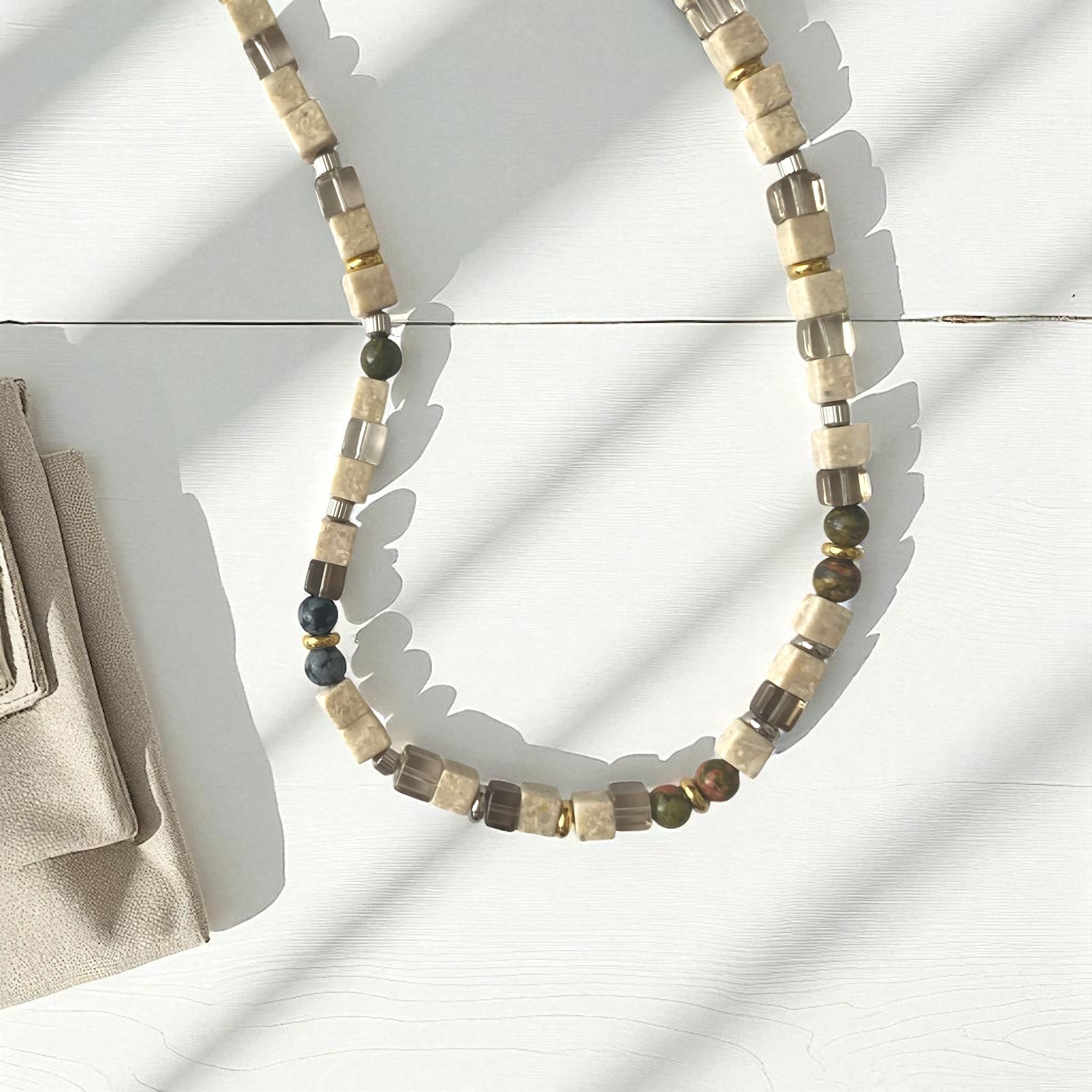 River stone ×3stone【リバーストーンとカラーストーンネックレス】メンズ メンズギフト メンズネックレス ペア 天然石 天然石ネックレス ステンレス ステンレスネックレス ペアネックレス カップル 記念日 誕生石