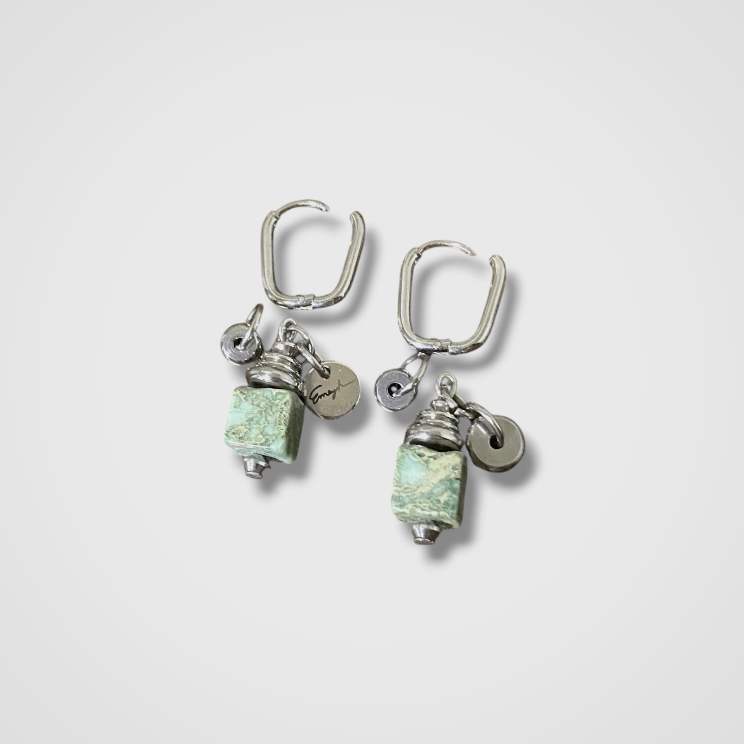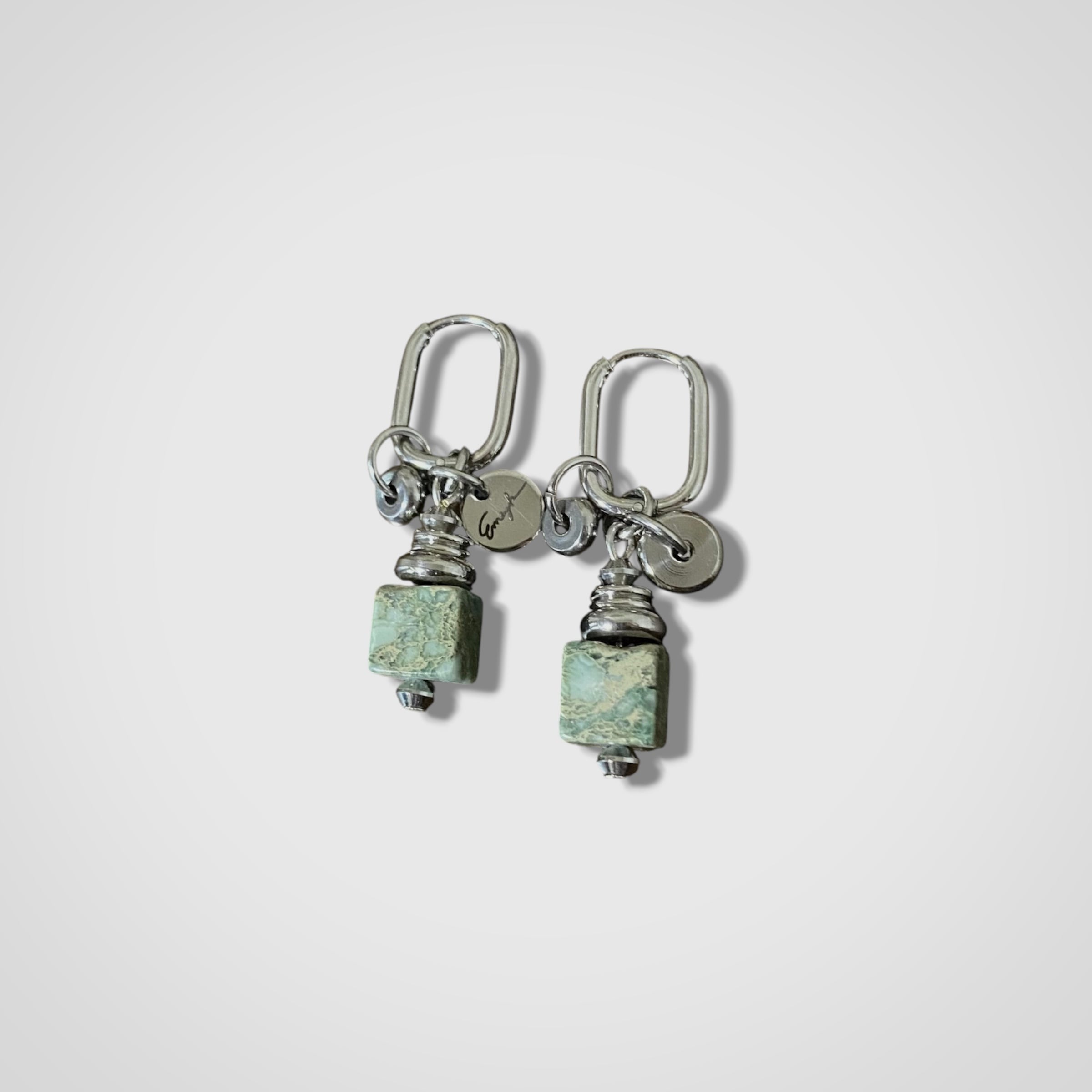 【01126043】[全5種類]stone cube pierce /セサミジャスパー/水色/ジャスパーピアス/天然石ピアス/揺れるピアス