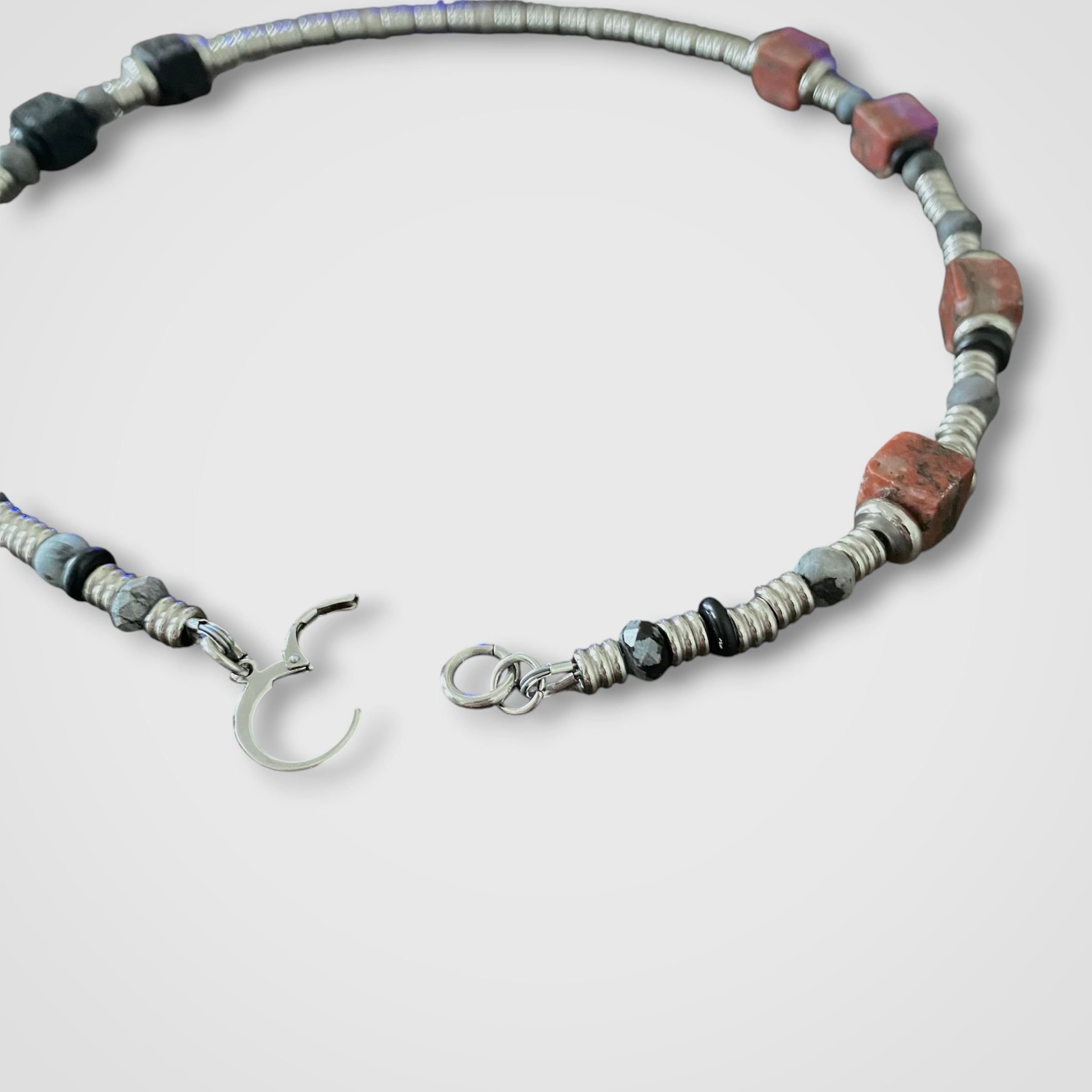 ステンレス ステンレスネックレス ジャスパー 溶岩石